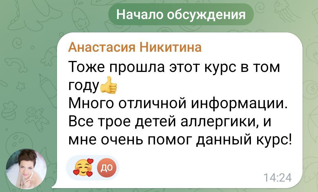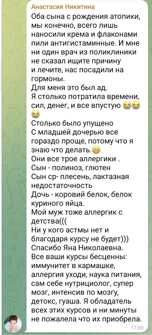 Ответ: Да. В материалах канала отдельно говорилось, что курс подходит и взрослым, и детям, причем как при первых проявлениях, так и при длительной истории аллергии.