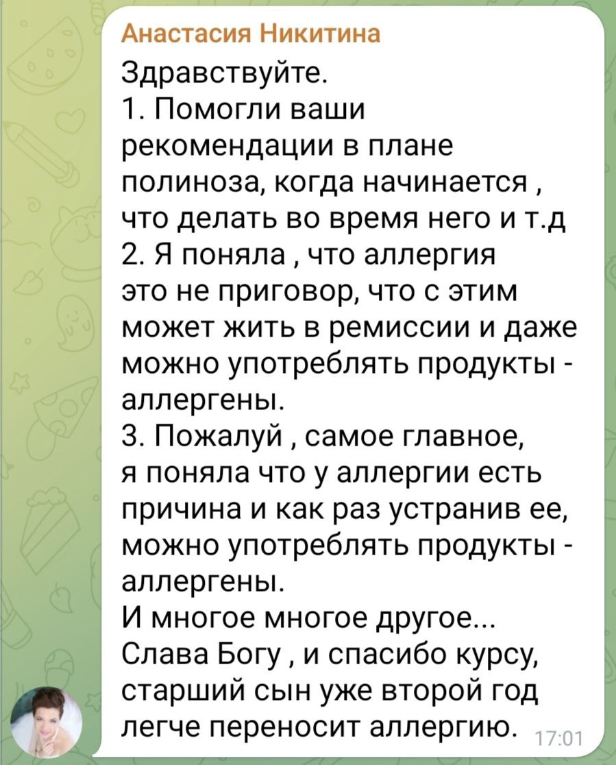 Курс “Аллергия, уходи” поможет Вам разобраться в теме глубже, увидеть логику происходящего и получить понятный план действий.